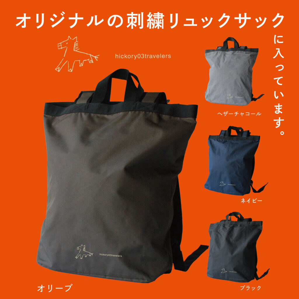 福袋限定の刺繍が入ったリュックを4色ご用意しましたので、お好きなカラーを選んでくださいね。