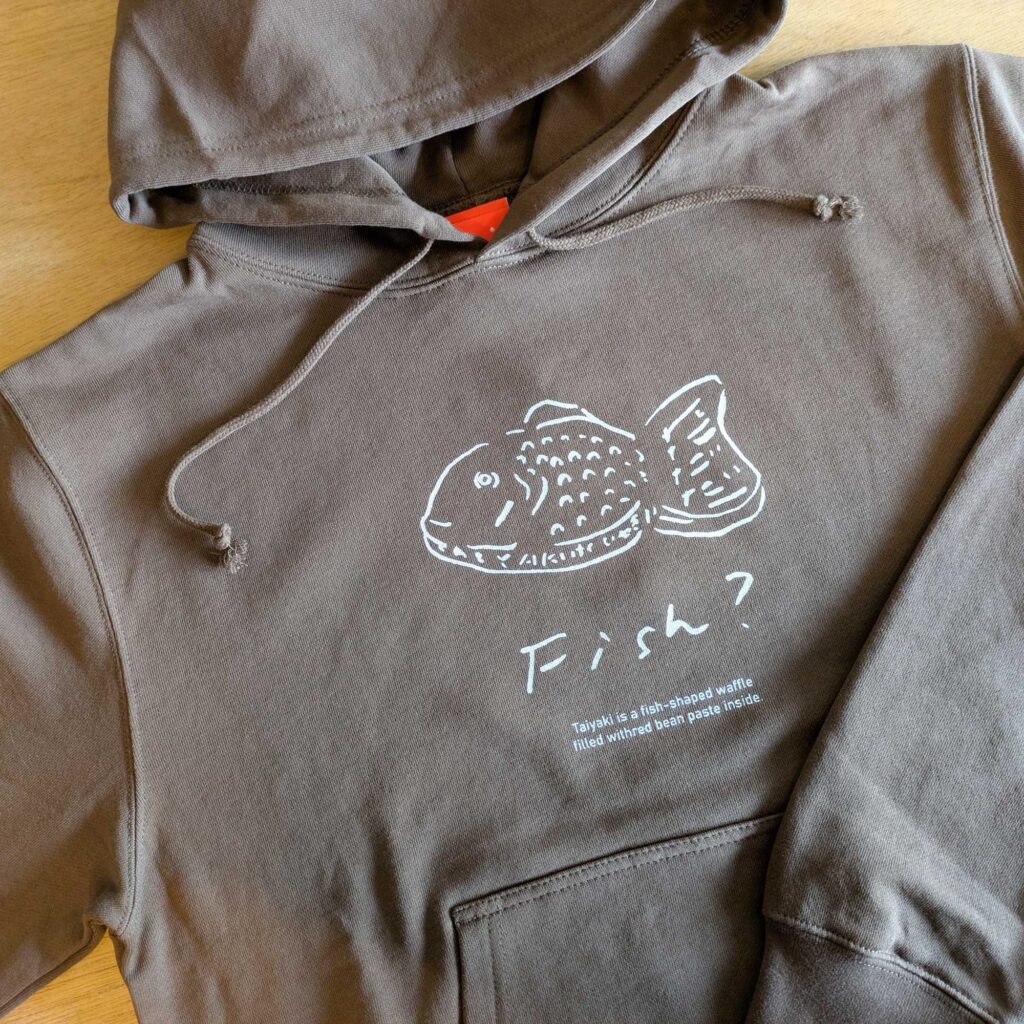 みんな大好きな「たい焼き」をモチーフに代表の迫が描いたもの。これまでTシャツで展開していましたが、今シーズン初めてパーカーが登場しました!