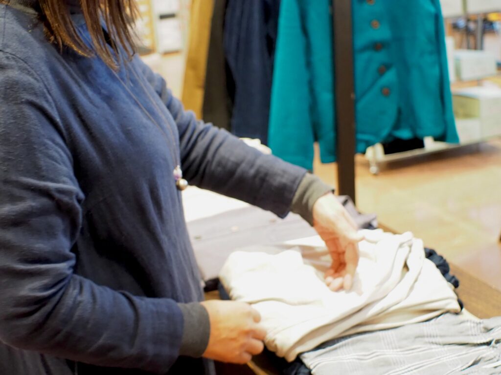 一着、一着、丁寧につくりあげるお洋服。愛媛のSa-Rah factoryにて製作されて、ここ新潟まで届きました。長く着てほしいお洋服だからこそ、着心地のよさ、生地選びもこだわっています。