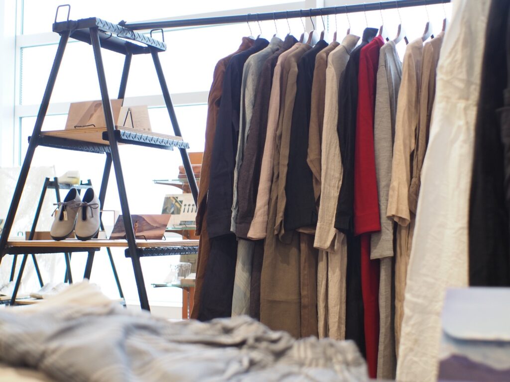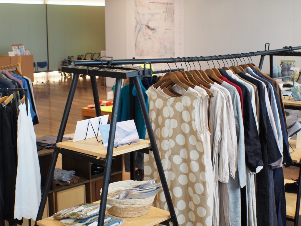 天然素材を使った日常に寄り添う服を、美術館の空間でご覧いただけます。 お気に入りの一着を探しに、ぜひ万代島美術館ミュージアムショップまでお越しください。